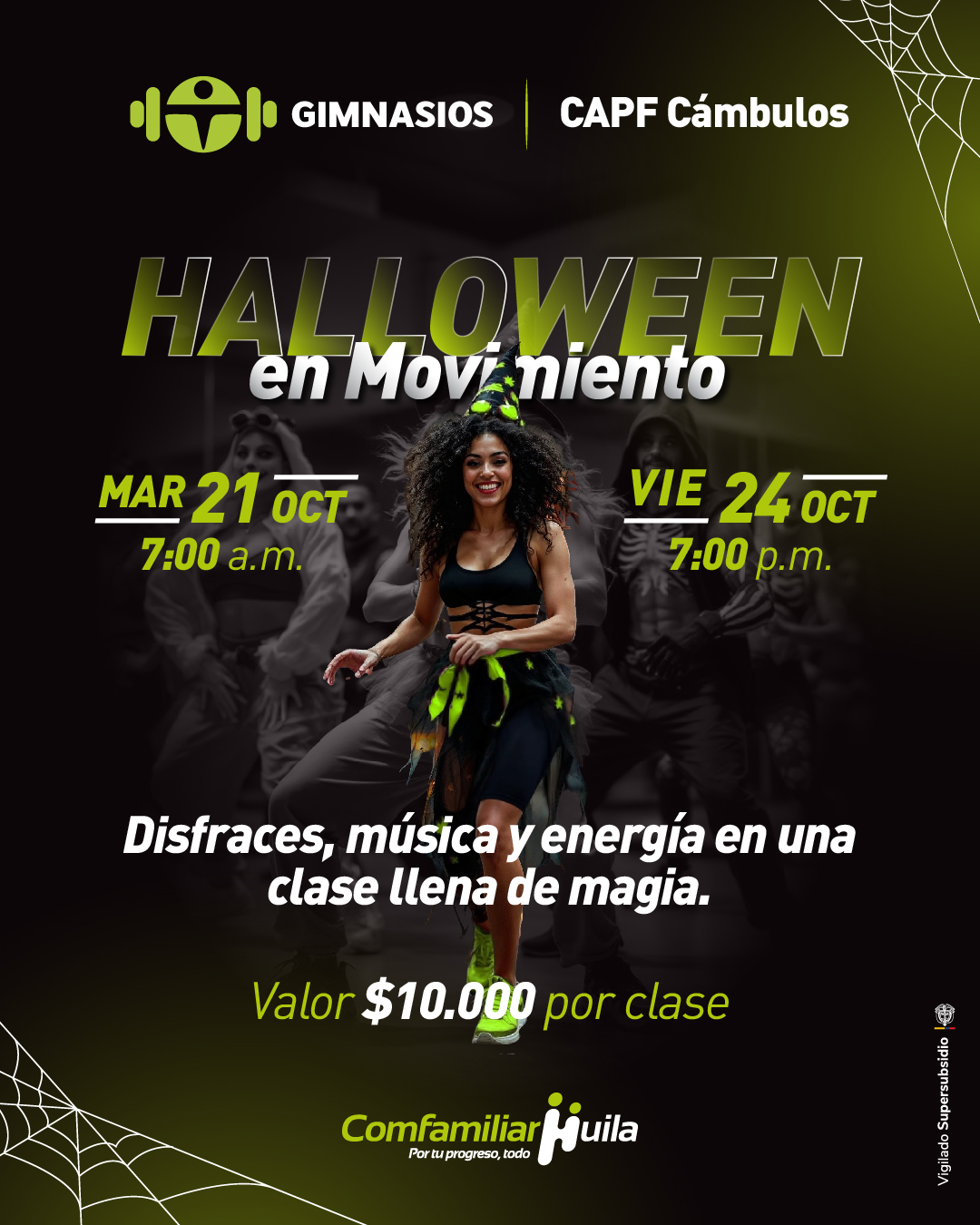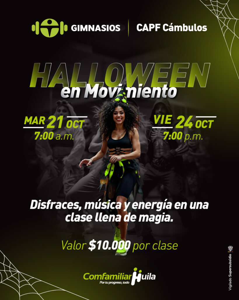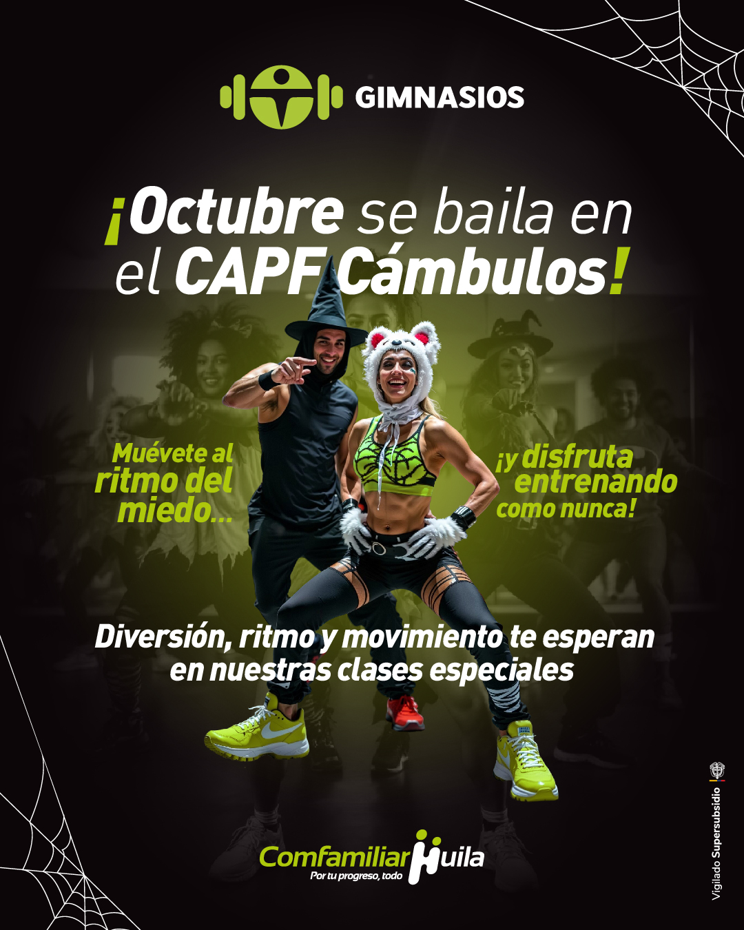 En Comfamiliar Huila celebramos el movimiento, la energía y la diversión. Este mes de octubre, nuestros gimnasios traen clases especiales llenas de ritmo, color y creatividad para que vivas una experiencia diferente entrenando.